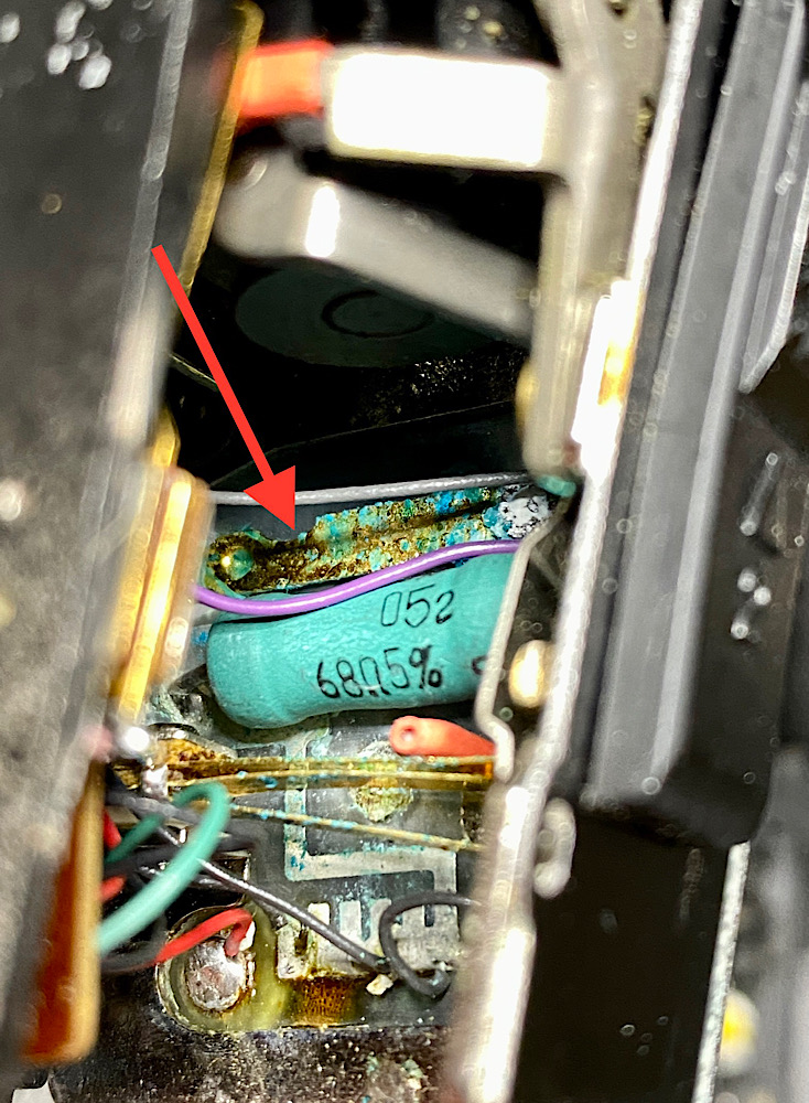Offenkundig sind die Batteriesäurereste auf der Platine noch am Werk.