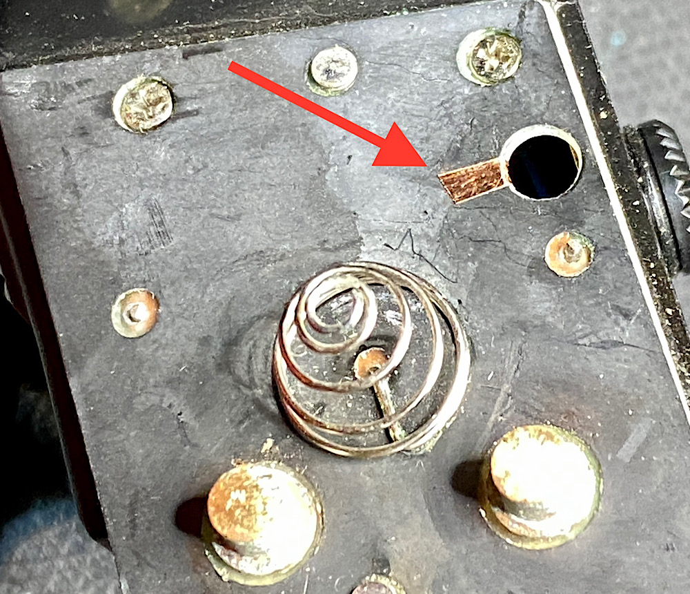 Aufgrund der sichtbaren Korrosion am Kontakt vermutete ich, dass er nicht leitete und so stets ein eingelegtes Akkupack signalisierte. Da die Batteriespannung niedriger ist, interpretiert das die Batteriekontrolle als leere Akkus und die LED leuchten nicht auf.