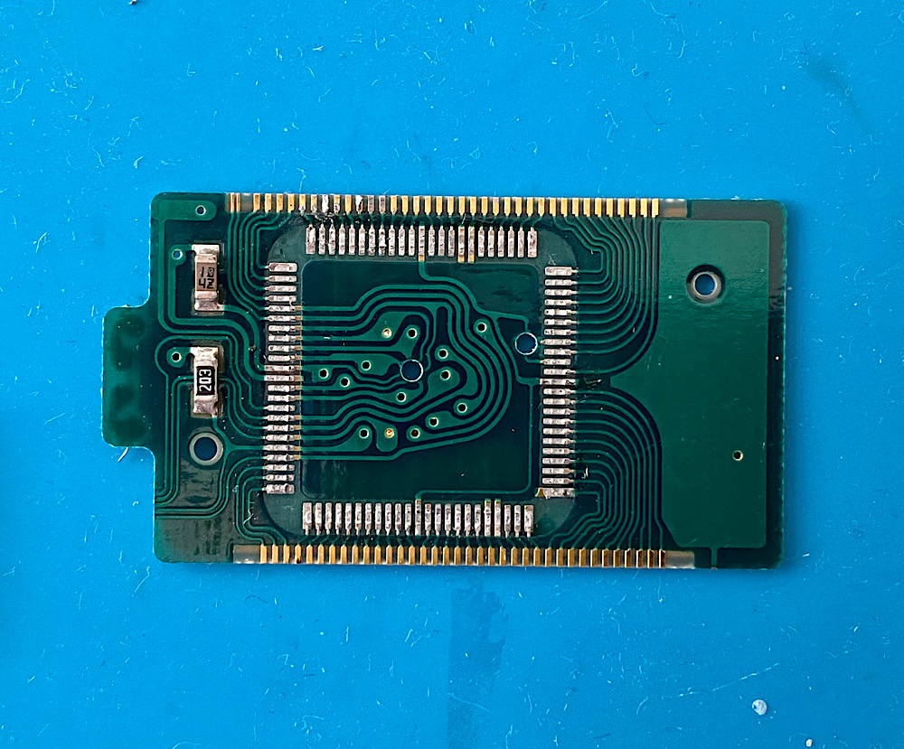 Die Platine mit den Pads, auf denen sich noch Lotreste befinden: