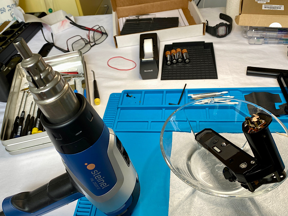 Es genügte dafür offenkundig meine linke Hand, mit der ich das Gehäuse beim Abziehen der Leatherette festhielt.