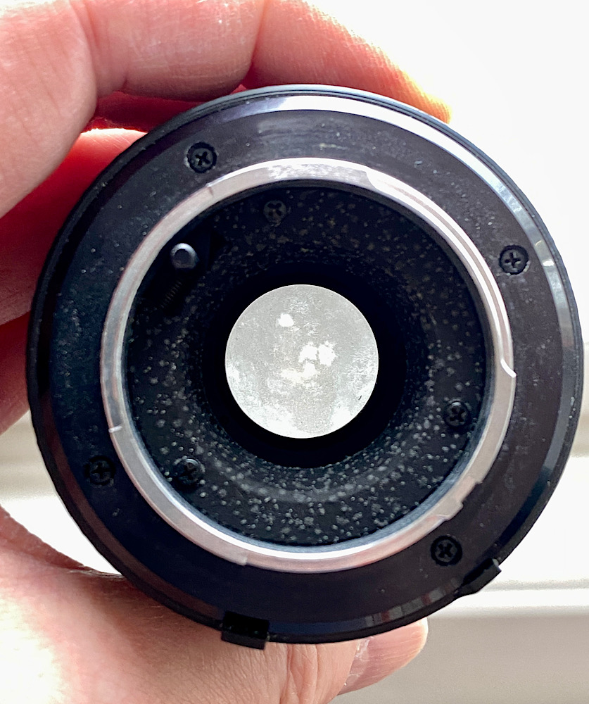 Nun zur hinteren Linse, die nicht nur staubig, sondern ebenfalls vom Fungus heimgesucht ist.