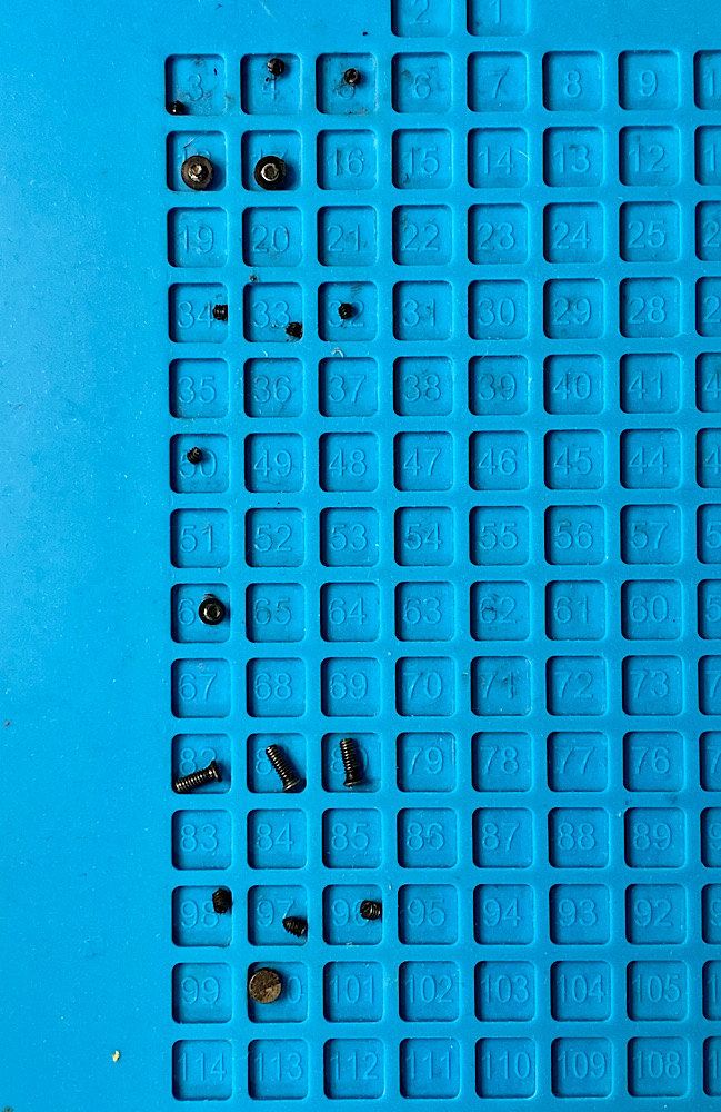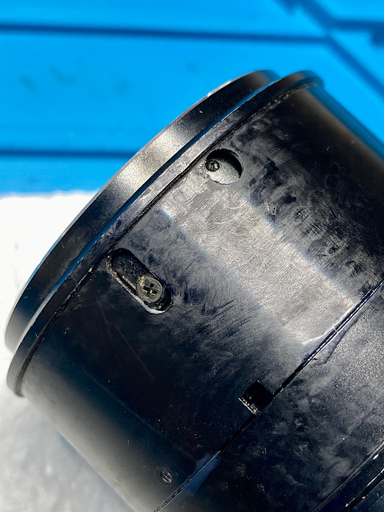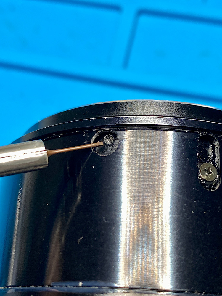 Da das obere Helicoid durch Eindrehfehler zu hoch sitzt, kann ich die Schrauben nur mit meinem kleinsten Schlitzschraubendreher bewegen.