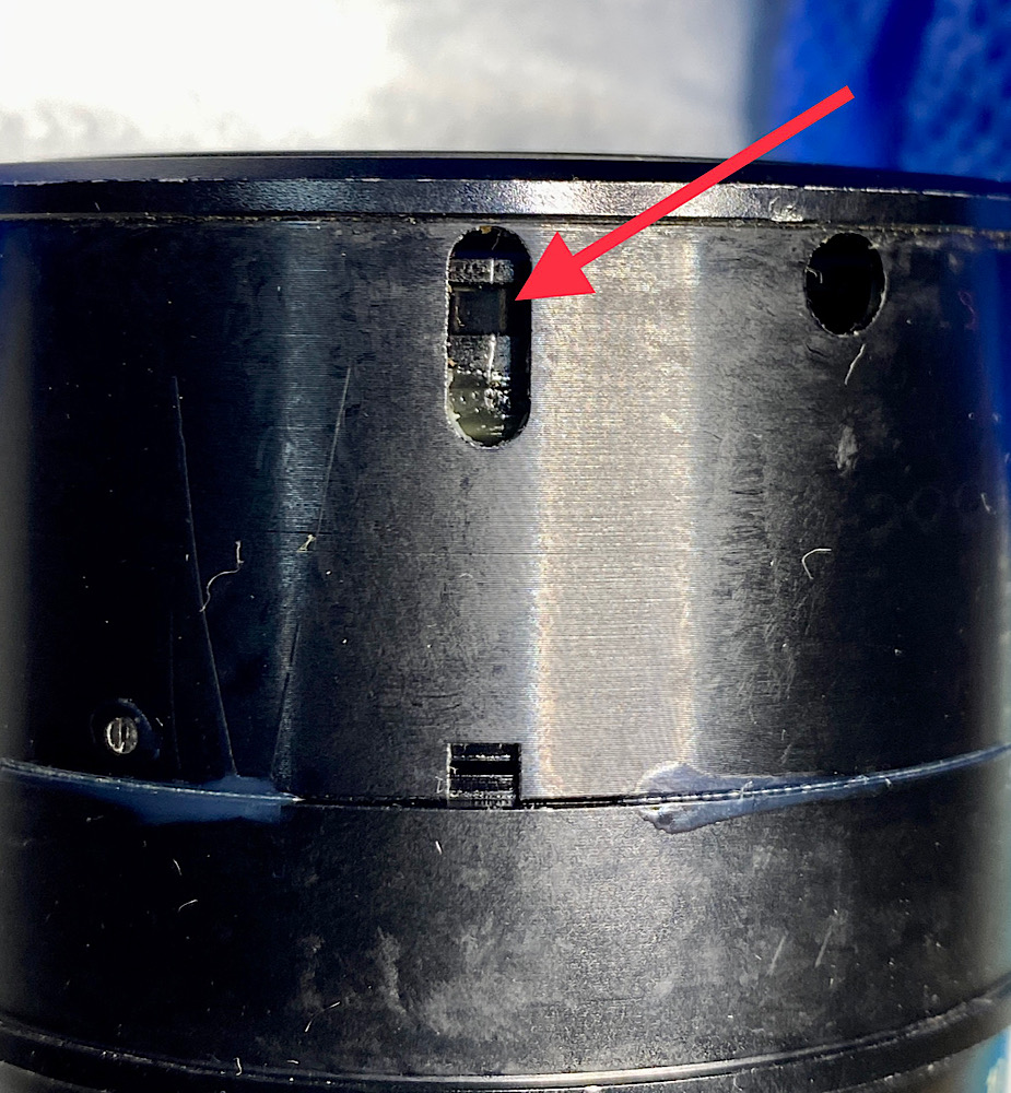 Der untere Teil des Fokusringes zurückgeschoben gibt den Blick auf die Zoommechanik mit den Gleitlagern frei.