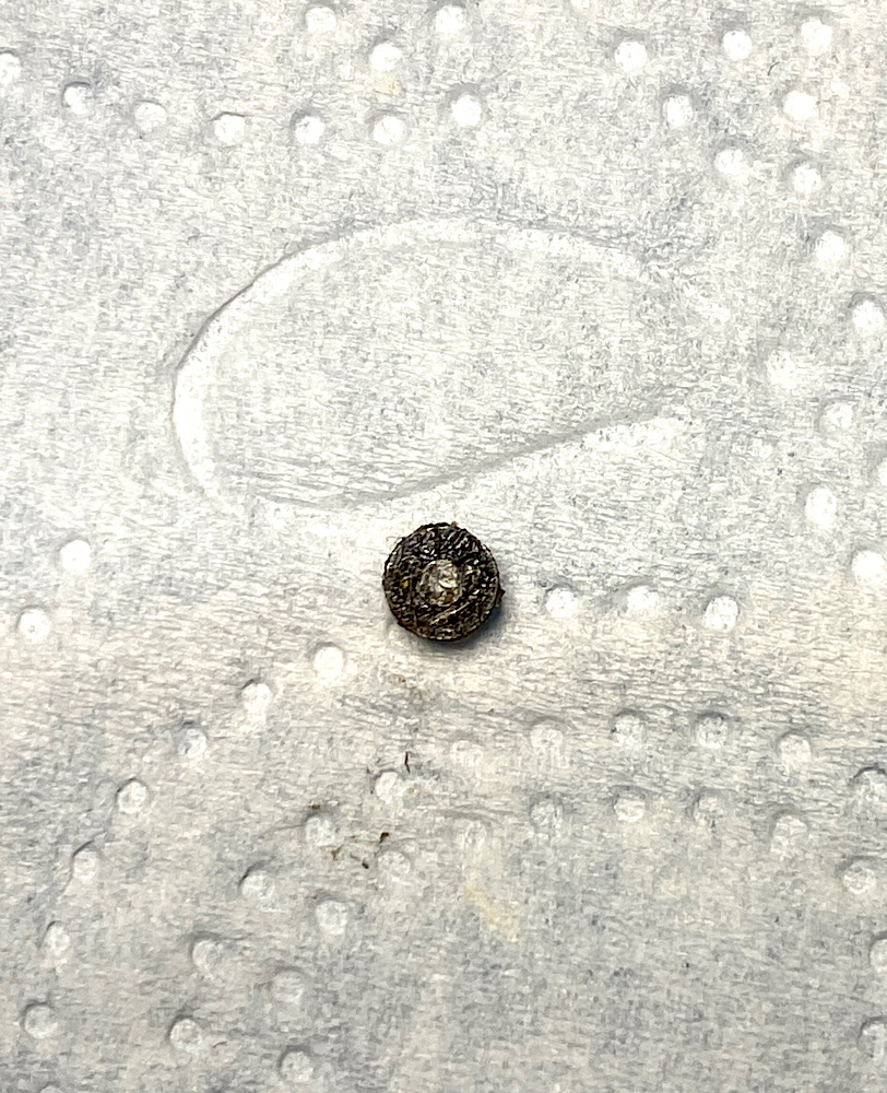 Eine der beiden Schrauben der Geradeführung ist gebrochen, der Schraubenkopf hat sich selbstständig gemacht.