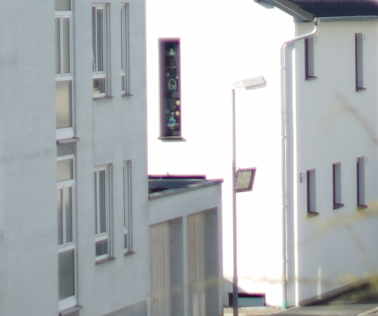 Ich beginne mal mit der weiten Distanz. Heute Morgen schien die Sonne, so dass sich harte Kontraste ergeben haben. Die andere Straßenseite hatte deutlich weniger Kontraste und war entsprechend uninteressant.