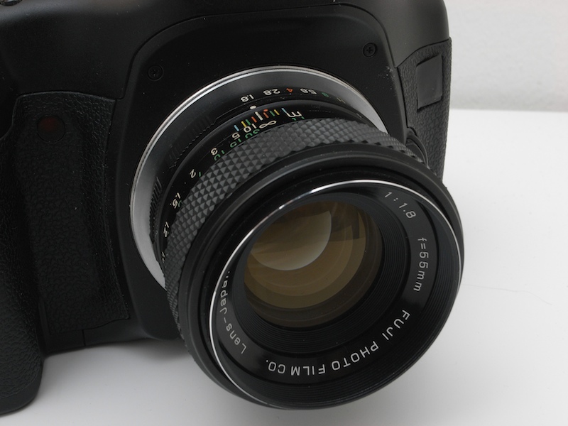 Ich habe ein ein Fujinon 1:1,6 f=55mm auf der 5D --- ist ein sehr gutes Glas