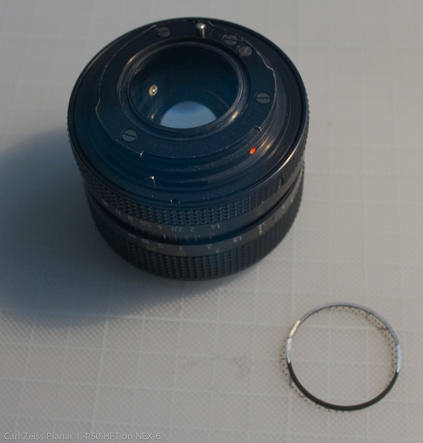 Das Objektiv kam in zwei Teile zerfallen bei mir an. Der Vorbesitzer hat vermutlich an dem Ding rumgeschraubt und nach einem Weg gesucht, das Teil an seine Kamera zu bringen.. er ist dabei recht "fragwürdig" vorgegangen.