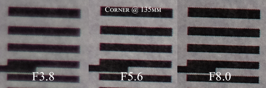 Kiron. Anbei die Testshots in 100% Ansicht aus Mitte und linke Ecke oben:
