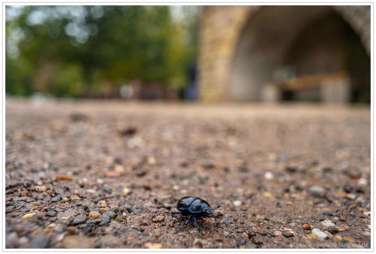 #13 + #14 Zum Abschluß zwei Bilder bei f5.6 und weit ausgedrehtem Helicoid - der Mistkäfer war quasi am Linsenglas...