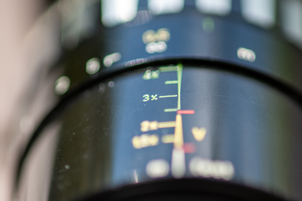 Das M-Travenar hat Vorwahlblende, auf Grund der recht weiten Öffnung von 2.8 lässt sich angenehm fokussieren.