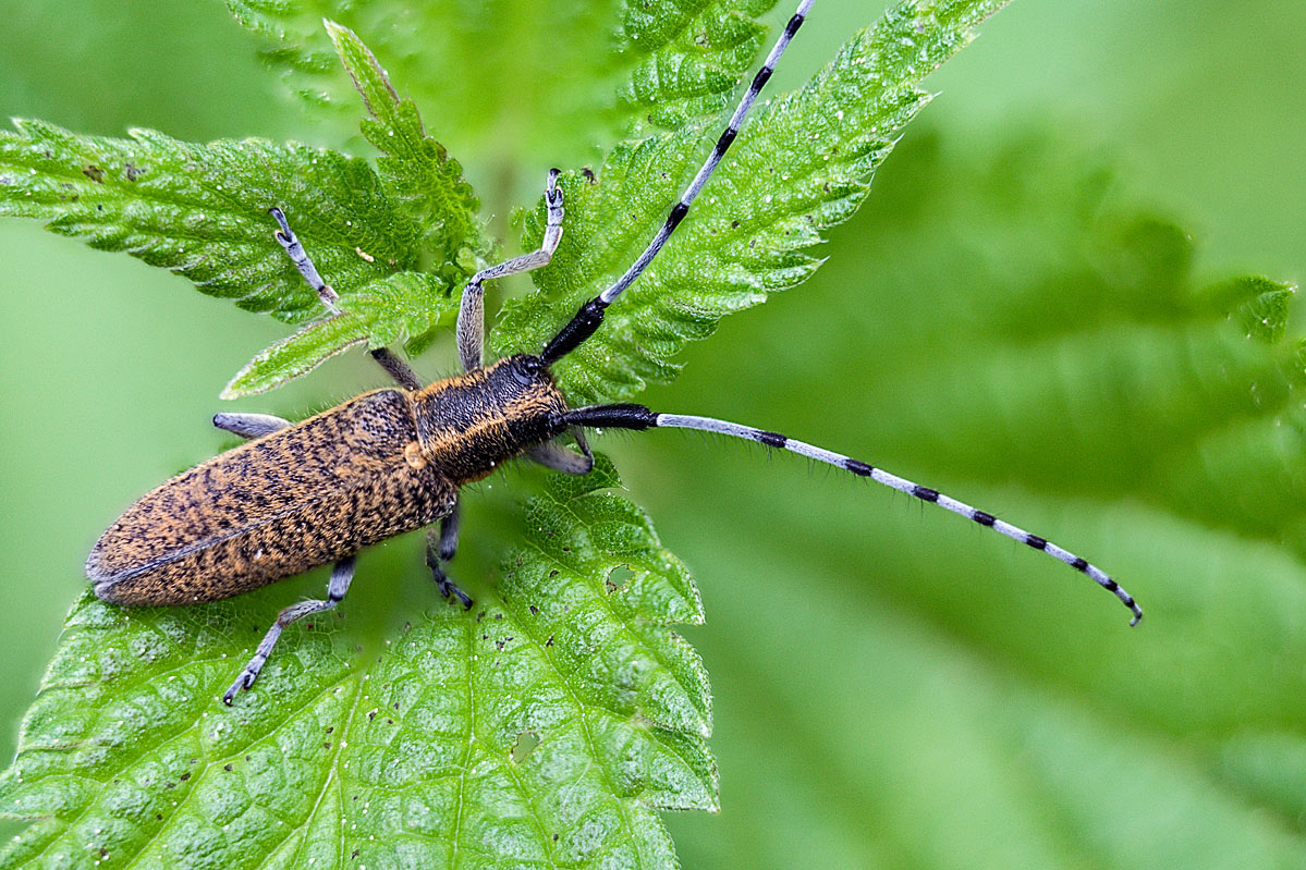 Am Wochenende habe ich mit dem Schacht-M-Travenar diesen Käfer fotografiert und um wenigstens ein passendes Bild zu erhalten, habe ich aus der Hand im Serienbildmodus ein paar Bilder aufgenommen und dachte mir dann als ich sie am PC sah, mal sehen, was passiert, wenn ich die stacke. Mit Helicon Focus kam aus 7 gestapelten Bildern das heraus (- leider fehlt ein Fühler):