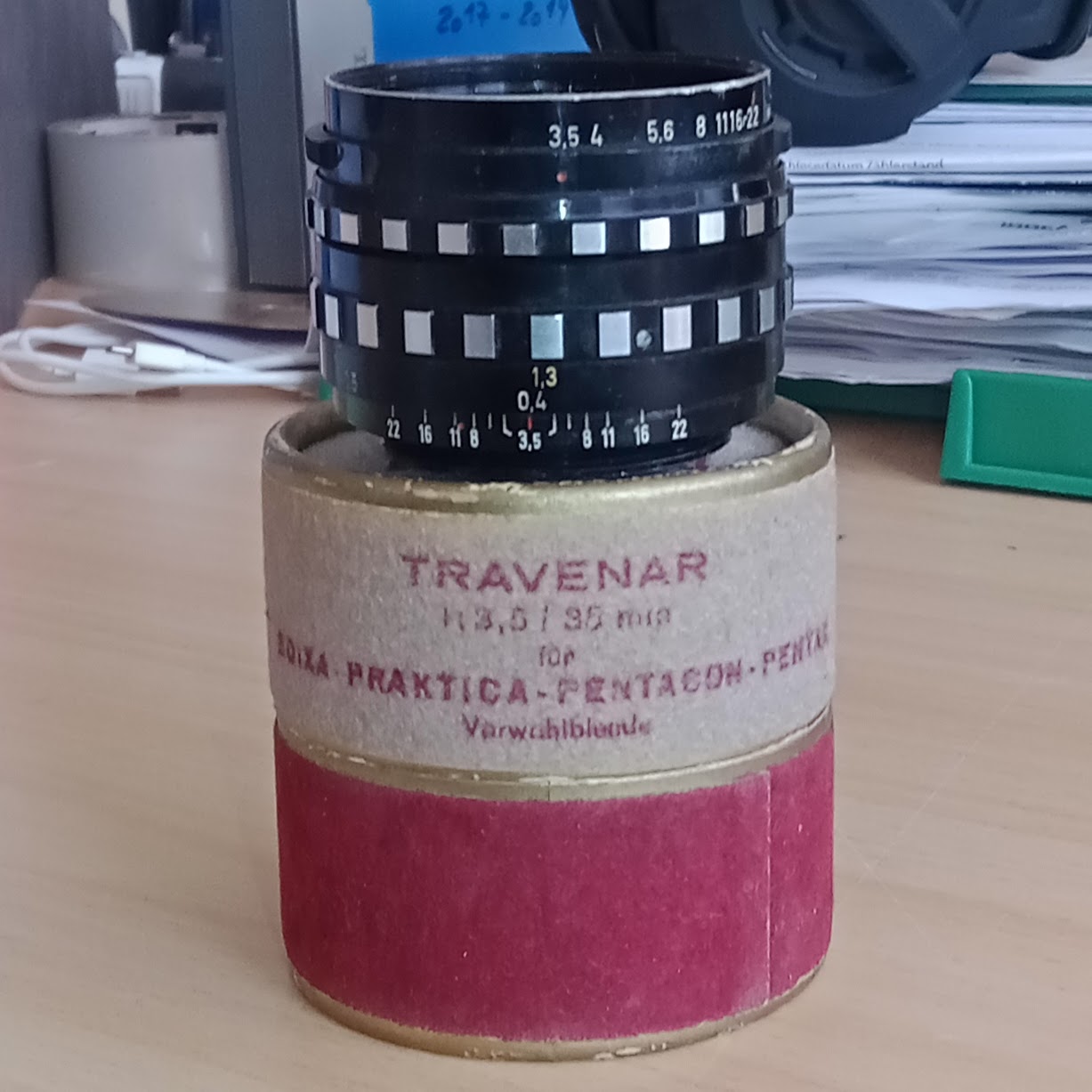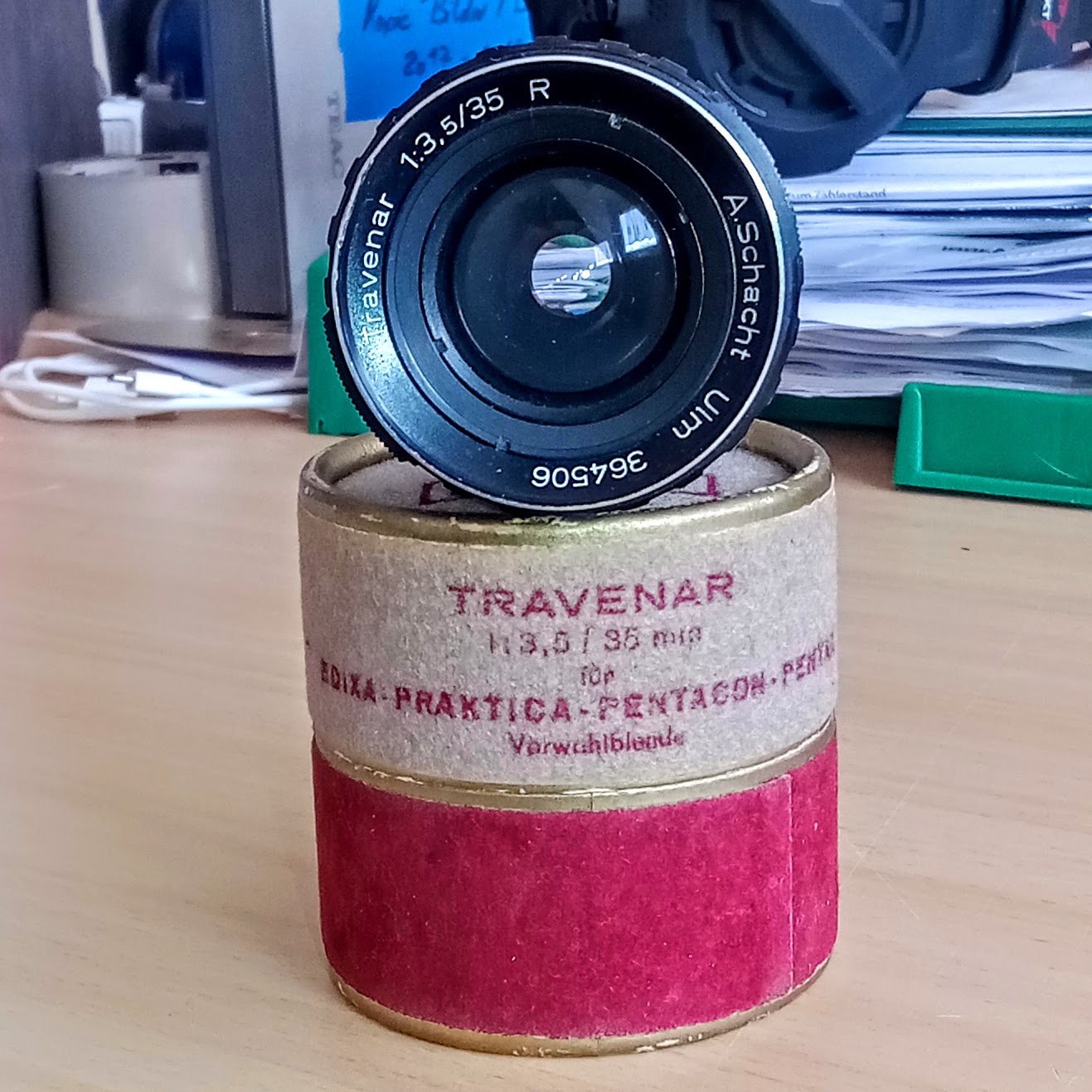 Ich hatte mal mehr von Schacht, habe das Material mal in einer früheren Aufräumaktion an einen Sammler abgegeben, nun denn, vielleicht nicht so helle - aber manchmal ist es so wie es ist. Das hier hat wegen seiner Schachtel überlebt, leider ist es aktuell nicht gebrauchsfähig, Blende ohne Funktion, Fokussierung ebenso, ich habe mich aber bislang nie damit weiter beschäftigt. Was ich vielleicht mal ändern sollte.