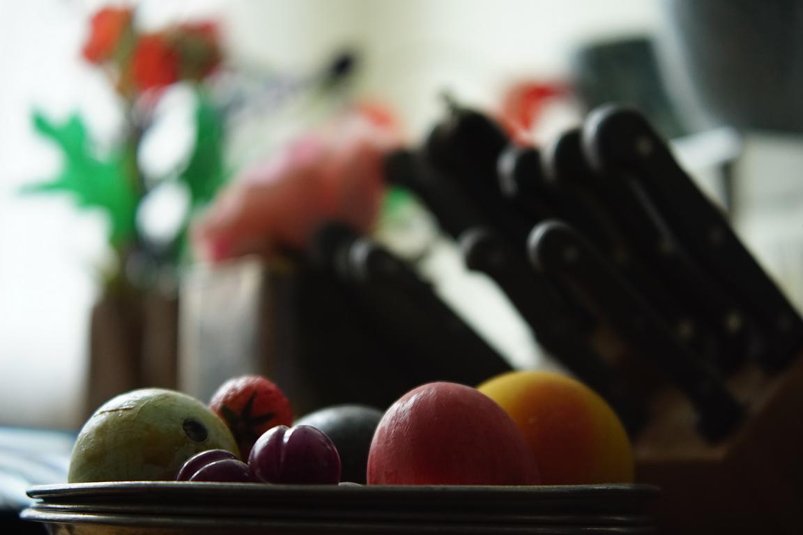unseren Küchentisch mit dem Marmor-Obst habe ich schon mit diversen Objektiven fotografiert, weil das Licht schön weich kommt