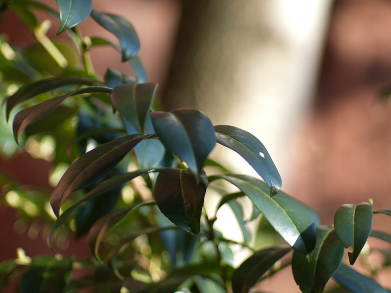 Um dem etwas auf den Grund zu gehen, habe ich daraufhin Motive mit Spitzlichtern ausgesucht und siehe da, die ersten reproduzierbaren Unterschiede ließen sich feststellen: Das Nikon bildet Lichter im unscharfen Bereich mit einem deutlich ausgeprägten hellen Rand ab während das Zuiko sehr gleichmäßige helle Kreise produziert und daher auch insgesamt das weichere Bokeh erzeugt. Außerdam kann man bei diesen Bildern sehen, dass das Nikon etwas wärmer bzw. rötlicher wirkt (Weißabgleich manuell und identisch eingestellt):