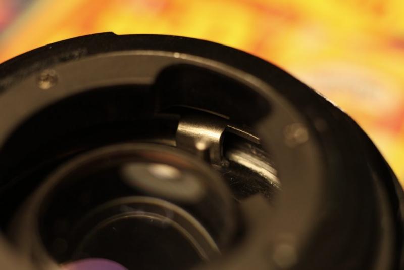 Was zu dieser Unklarheit beigetragen hat, war die Tatsache, dass statt "nach unten" dieses Bauteil in vielen Objektiven, wie auch den Rokkor 1.4/50 aus dem engl. Konvertierungsvideo, nach oben zeigt und somit nur Führungs- und Stopwirkung hat, eine Kürzung also zu keinen Problemen führen sollte ..