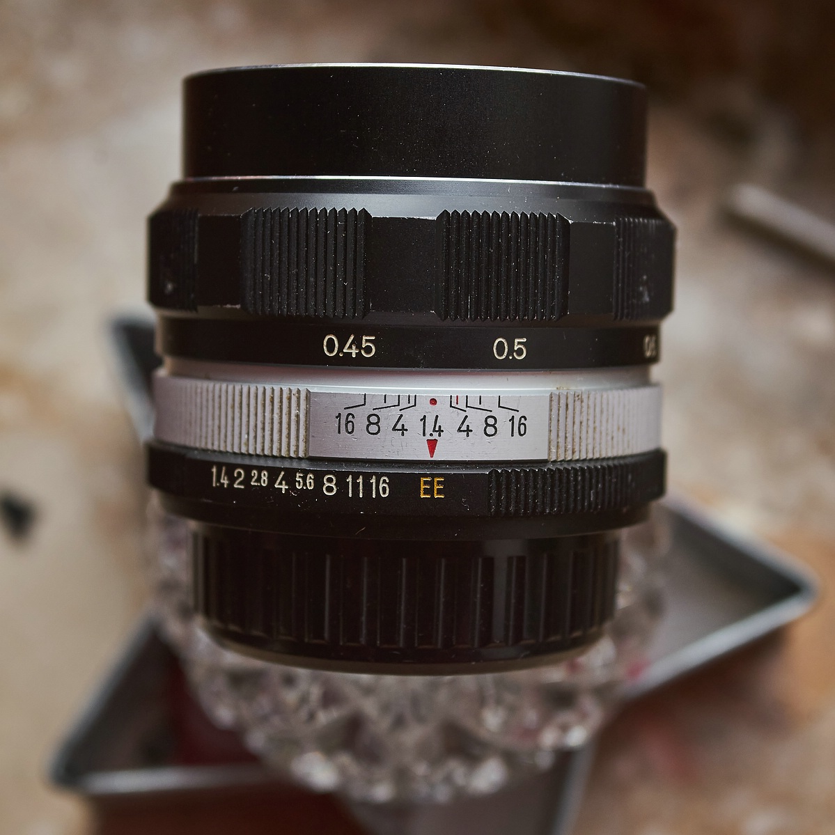 Baujahr: Ich kenne keine exakte Zuordnung anhand der Seriennummern aber da das Objektiv keinen Chromring mehr hat und nur bis zur Ablösung durch das 1.4/50 gebaut wurde, sollte es aus der ersten Hälfte der 70er Jahre stammen.
