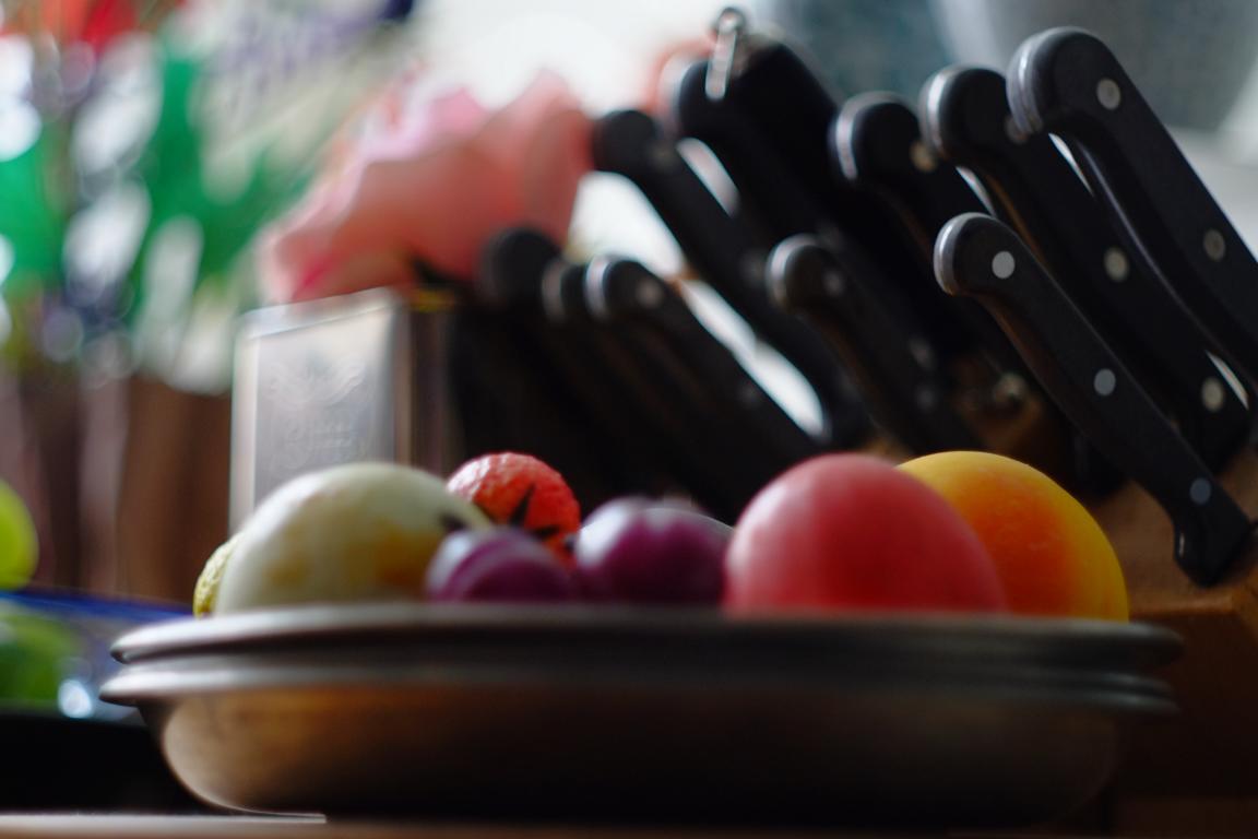 Ich habe zur Doku ein paar Fotos vom Steinobst (im wahrsten Sinn des Wortes) und den Stoffblumen in unserer Küche herausgesucht.