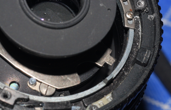 Ich schätze das Problem beim Zoom ist die Tatsache, dass der Blendenhebel eine Führung beherbergt, in die eine Lasche zur Übertragung an die Blende greift, zumindest sieht das auf deinen Bildern so aus: