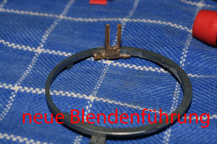 und mit dem entsprechenden Schlitz versehen..und auf den im Objektiv laufenden Ring, der vorher zur Kopplung mit dem Blendenring aussen diente, befestigt.. komm ich gleich noch zu..