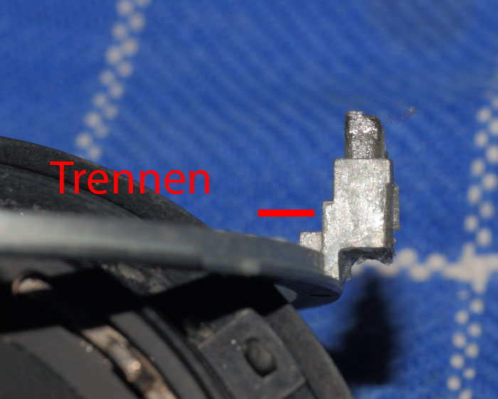Durch den nun geänderten Mount, ragt aber diese Kopplung an den Blendenring aussen deutlich über die Höhe dieser Stützpunkte hinaus und muss gekürzt werden..