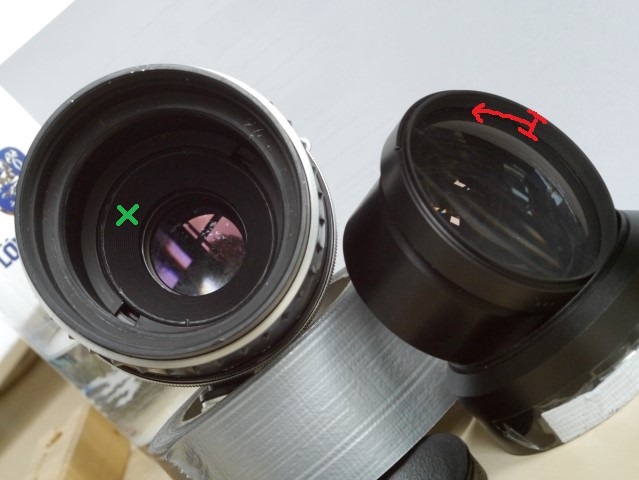 An die Linsen kommt man dann der Reihe nach von vorne durch abschrauben des vorstehenden Ringes (Bild 5, rot).