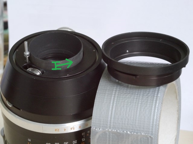 Der überstehende Tubusring (Bild 7, 8, grün) kann mit der Hand abgeschraubt werden, dann ist der folgende Schritt weniger behindert.