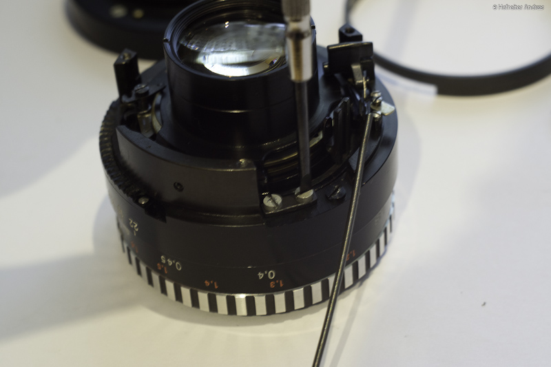 Abnehmen der obersten Linse (dahinter sind die Blendlamellen)