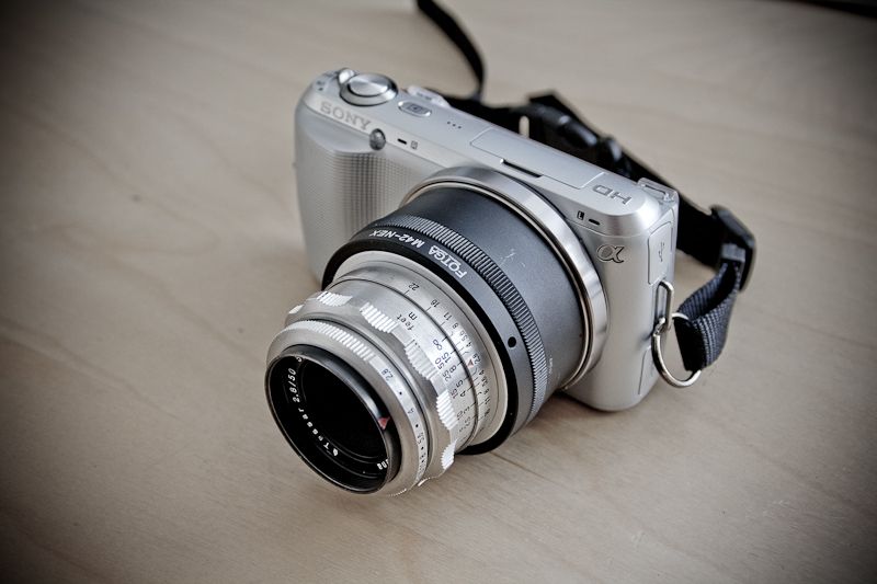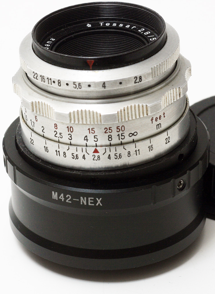 Ich kann die Ausführungen von Timo in allen Punkten bestätigen. Ich benutze das "Adlerauge" schon seit einem Jahr an meiner EOS mittels M42/EOS Adapter. Die unendlich Einstellung funktioniert, kann auch nicht anders sein, denn das Auflagemaß ist durch die Adaptierung gegeben. Die Abbildundsqualität des kleinen Tessar ist sehr schön, in der Bildmitte superscharf. Natürlich passt das "Gespann" somit auch an die Nex, mittels EOS/Nex Adapter.