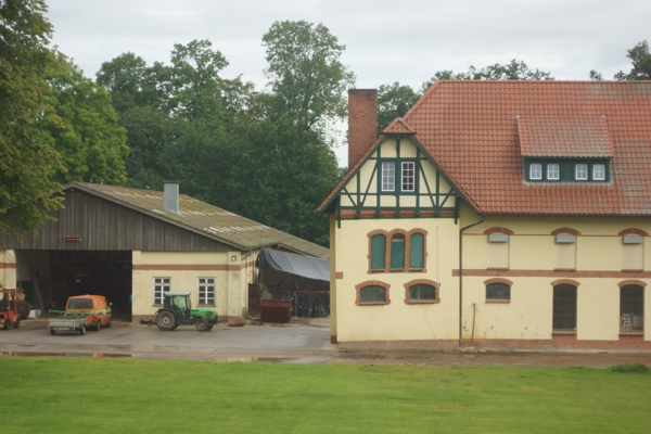 Hier ein schneller Schuß gegen Unendlich durch die Fensterscheibe hindurch in den Gutshof hinunter..