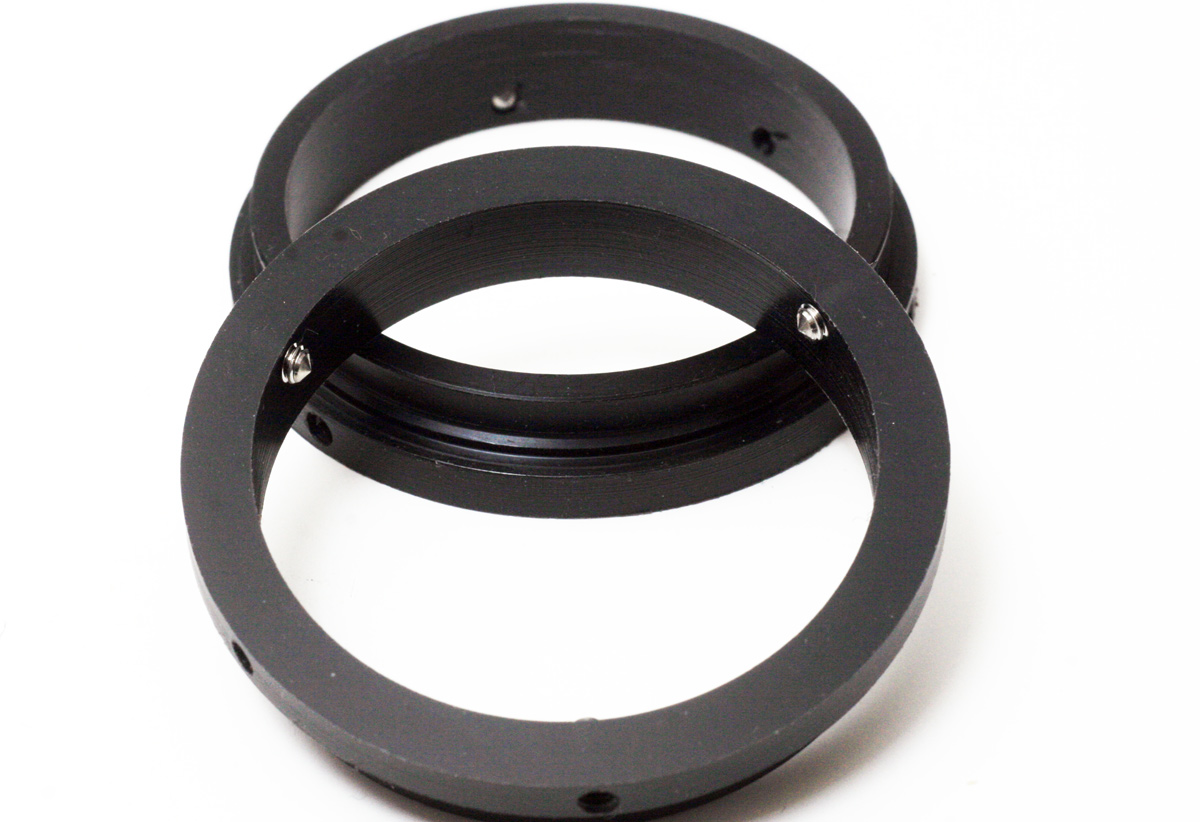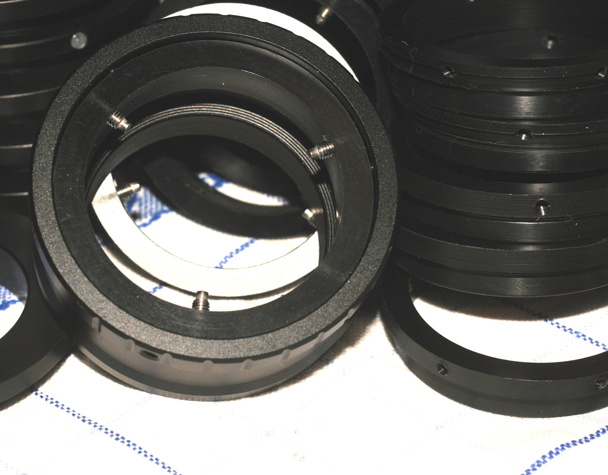 Dies sind die wichtigen Aspekte dabei... also bei der Verbindung Objektivgewinde zum Befestigungsring nicht zuviel Schraubendruck aufbauen, weil der sonst den Ring verformt. Wenn die beiden "vereint" sind und der Ring sich nicht in den Adapter einpasst - auch nicht mit etwas Druck - dann an der/den Madenschrauben wieder "entspannen" bis Objektiv und Ring gemeinsam in den Adapter passen.