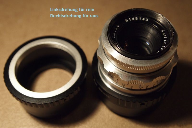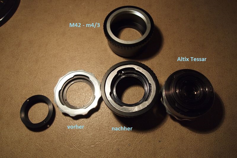 Eine angepasste 10mm Mutter macht die Altix Objektive zu "Objektivköpfen", ähnlich wie ein Makrokopf an einem Balgen, mit dem Unterschied, das hier komplett von