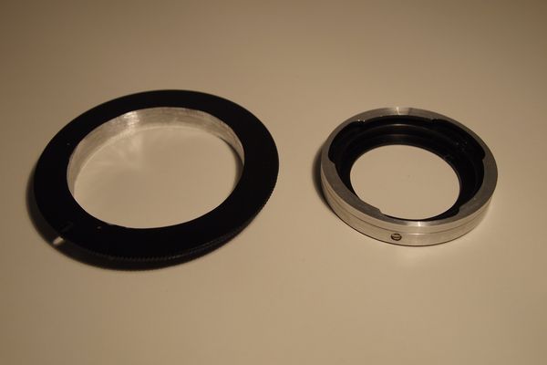 Die beiden Teile werden dann verklebt, so das der etwas größere Objektivkörper plan auf dem M42 Ring aufliegt.