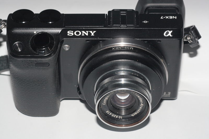 Und so schaut es fertig montiert dann an der NEX aus... prima Sache. Es soll woll irgendwelche Adapter geben, die aber so selten sind, das sie kaum zu finden sind..