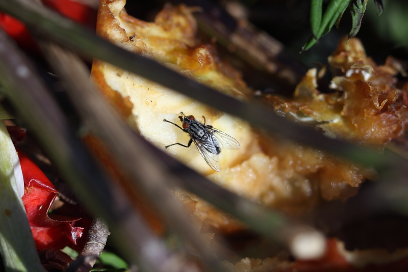 Und natürlich die Fliege auf dem Misthaufen, die für mich Anfänger brav still hielt. Sonst hätte ich freihand nix hinbekommen...