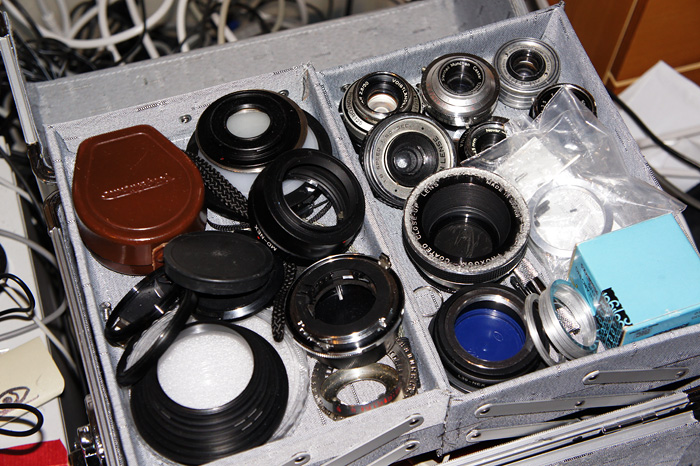 H.R.v.l.: Voigtländer Color-Skopar 2.8/50, Dallmeyer Dalmac 3.5/76, Steinheil Oscillo-Quinon 1.9/75