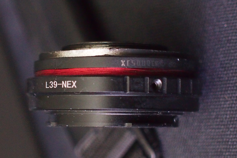 Anschlußring ausgebaut, bei einen Adapter L39 auf Nex halb heraustehen lassen und dann einen Step-Down Ring 52 auf 49 genommen und