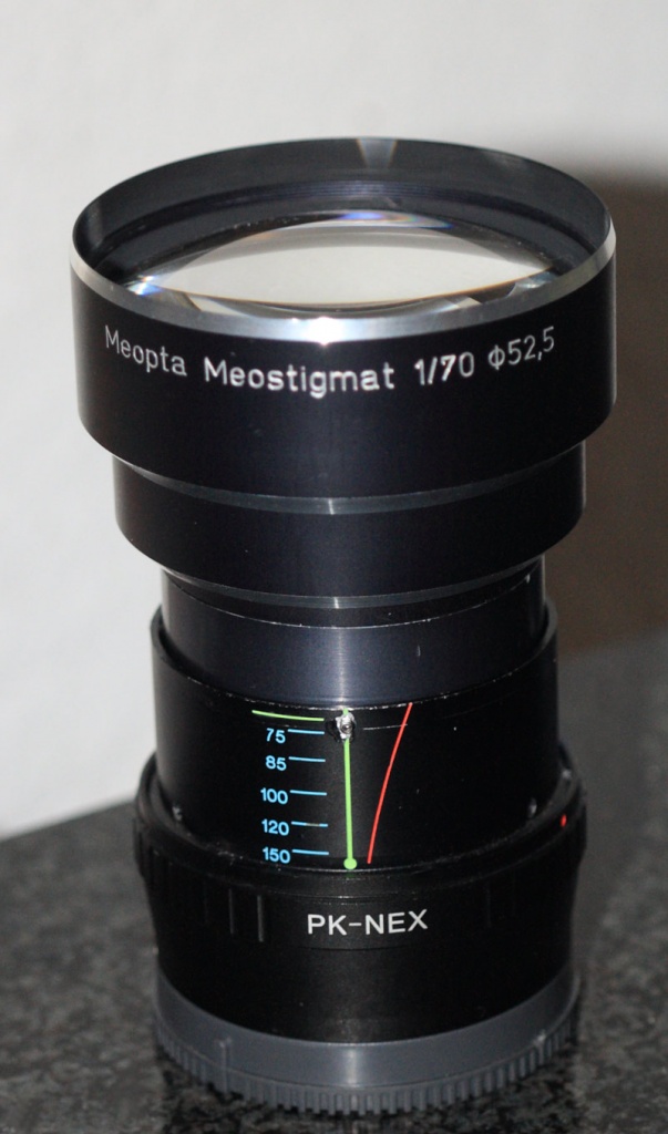 Von unserem User Helge bekam ich das nachfolgend gezeigte Objektiv Meopta Meostigmat 70mm mit der enormen Lichtstärke von f1, um auszuloten, ob man es irgendwie an die Sony NEX Modelle bringen kann.