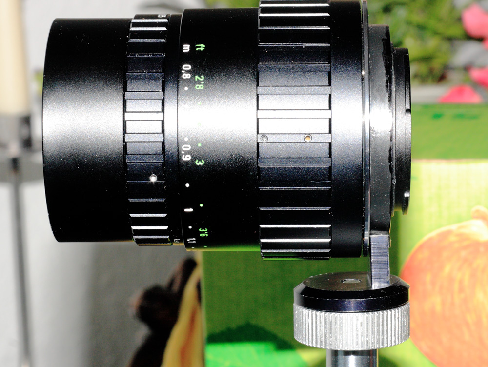 Das Objektiv war bereits einmal in einer Werkstatt, wo es wohl gereinigt und auf Unendlich gebracht werden sollte... irgendwas hat da aber beim Wiederzusammenbau wohl nicht funktioniert, denn im normalen C-Mount Adapter hingen die Indexmarkierungen an der Unterseite des Objektivs..