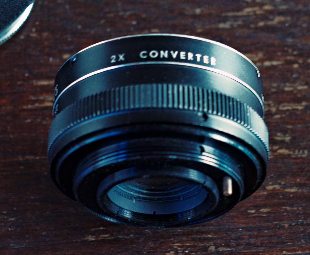 Bei der Benutzung eines 2-fach Telekonverters erhöht sich die Brennweite des 50 mm-Objektives auf 100 mm; die Naheinstellgrenze des Grundobjektivs bleibt unverändert.