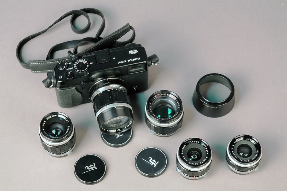 Die Pen-F-Objektive sind recht kleine Objektive aus den 1960er Jahren, die für Halbformat gerechnet waren (es wurde also ein halbes Negativ eines KB-Filmes belichtet und mit einem 36er Film waren somit 72 Aufnahmen möglich). Aus diesem Grund konnten auch die Objektive sehr klein sein (ähnlich denen für Leica M & Co.) und da das Auflagemaß sehr gering ist, ist die Adaptierung an aktuelle Systamkameras mittels eines nur schmalen Adapters möglich.