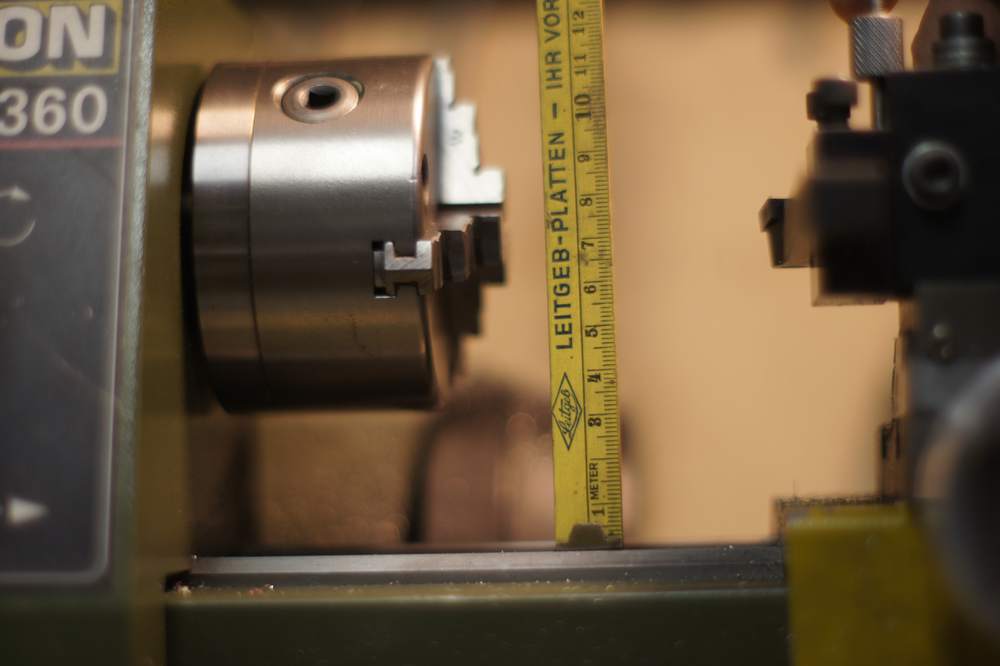 Nachdem der Haupttubus des Meoptas nun auf das passende Maß eingekürzt wurde, folgt nun die Umrüstung der Drehbank zurück auf den Spannzangenbetrieb: