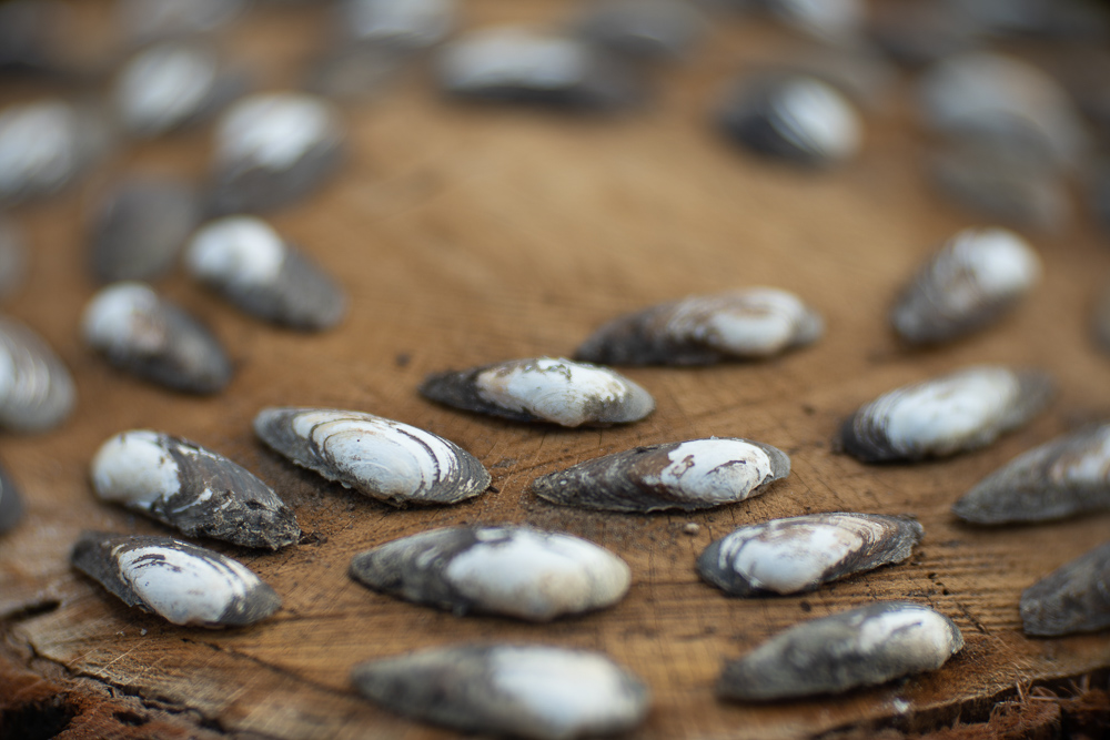Und zum Schluss noch mal eine Beispiel für die seltsame Schärfeebene. Auf die Muschel in der Mitte scharfgestellt. Von dort verläuft die Schärfeebene in die beiden unteren Ecken: