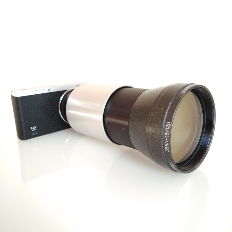 schon seit einiger Zeit liegt ein russisches Projektionsobjektiv für 35mm Projektoren, ein KO-120 (120mm Brennweite, f1.8), hier herum.
