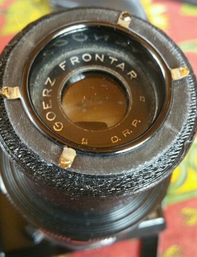 Linse: Goerz Frontar wahrscheinlich 1:9 105mm. Ergänzung: es scheint sich um ein 1:11 110mm zu handeln. Quelle:https://sites.google.com/site/fromth...ty/boxtengor54