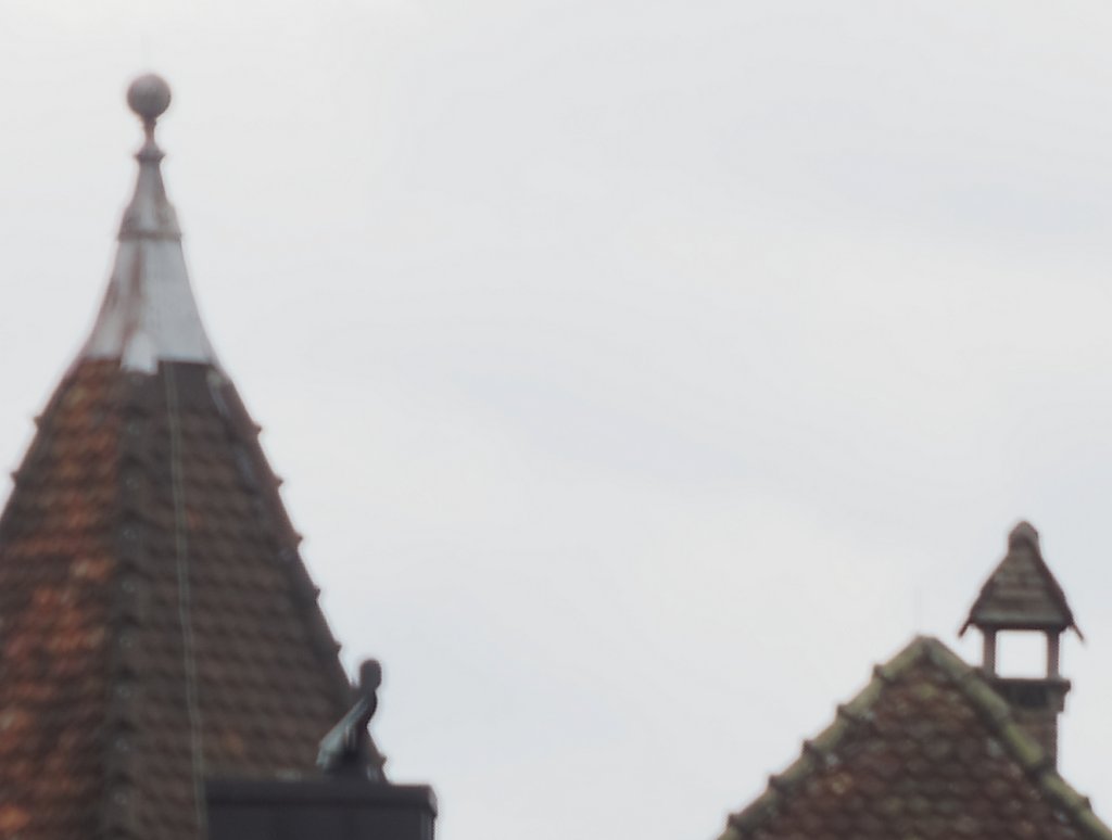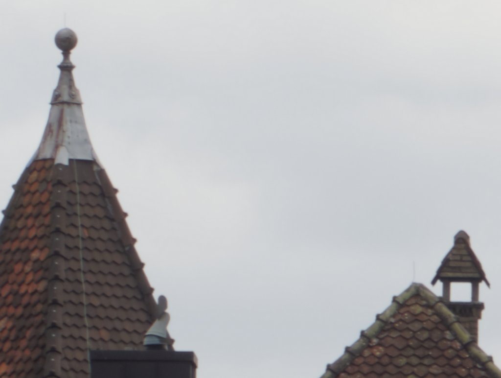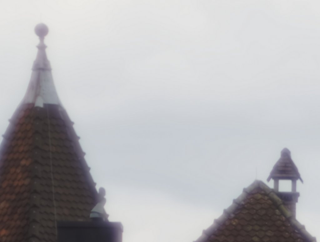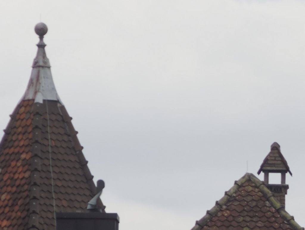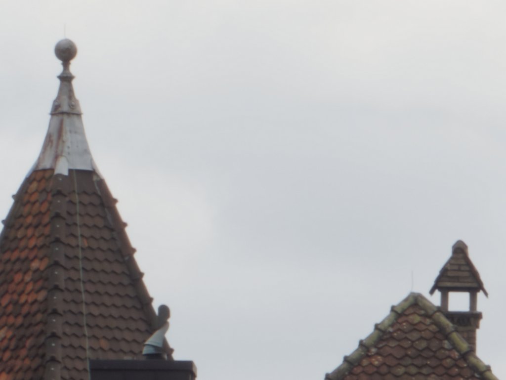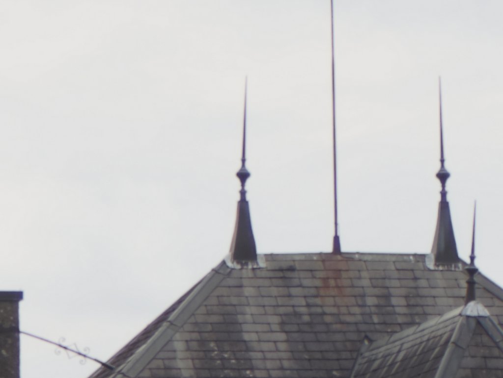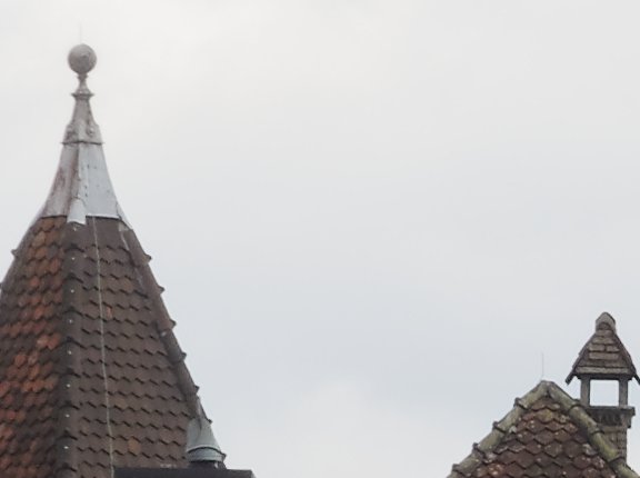 Beim ersten Crop lässt sich am Kaminaufsatz gut erkennen, was passiert, wenn sich ein Objekt während der HiRes Aufnahe bewegt.