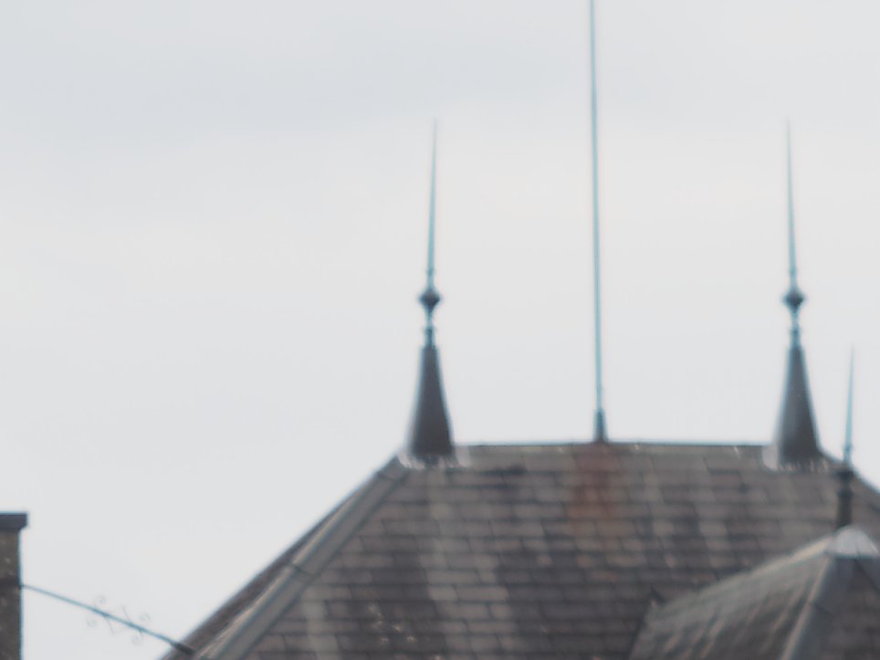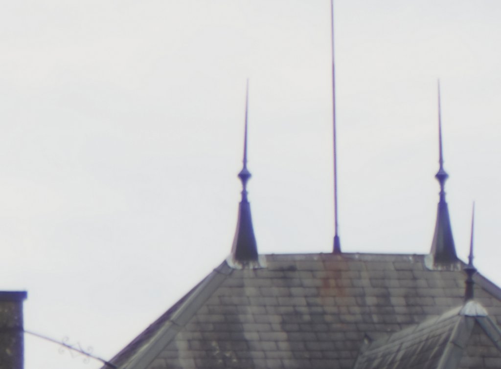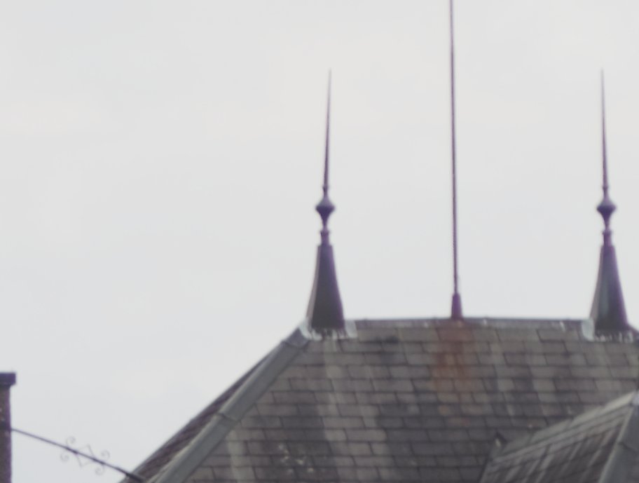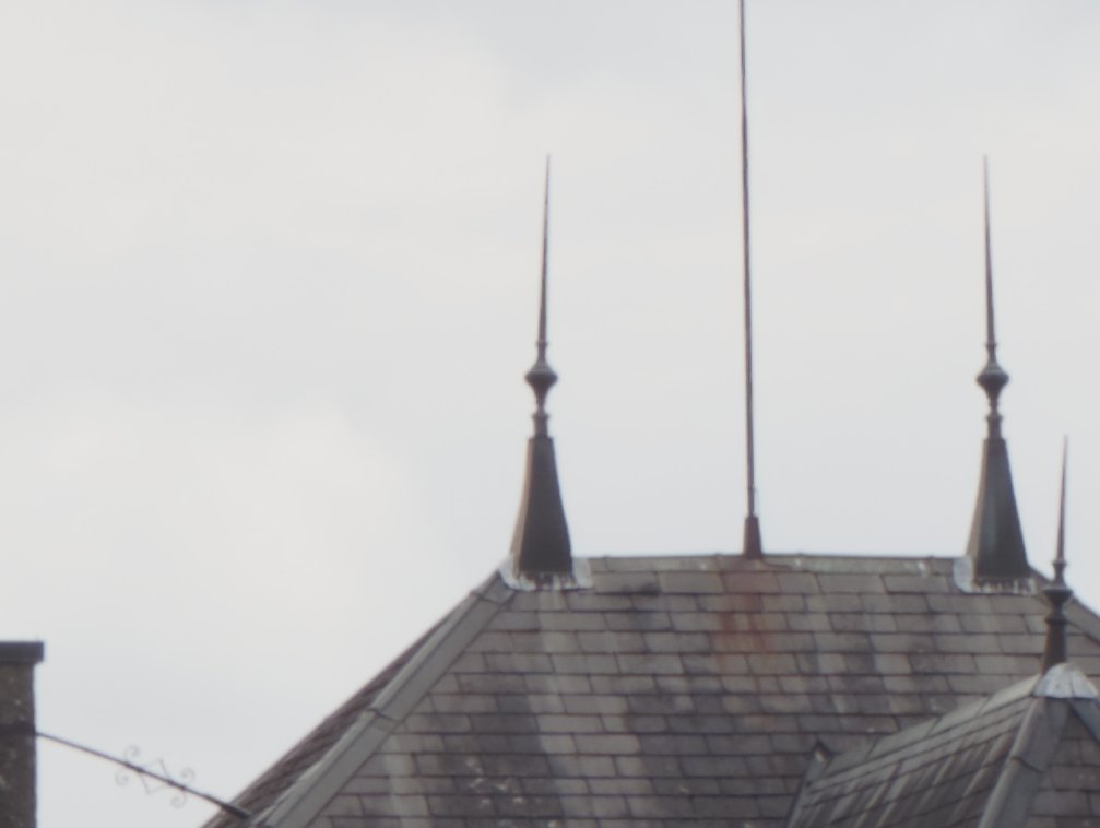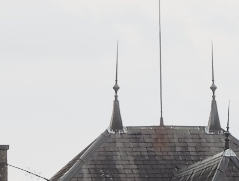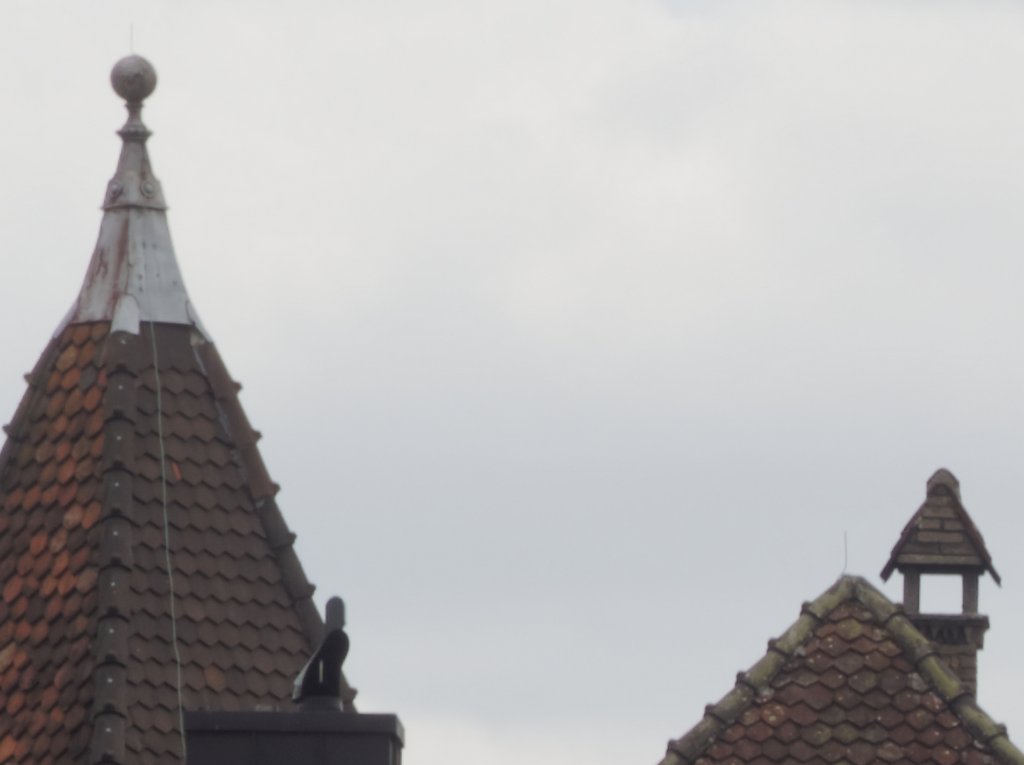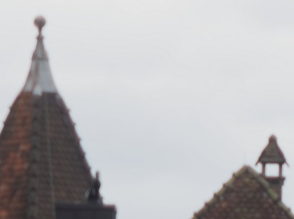 Beim ersten Crop lässt sich am Kaminaufsatz gut erkennen, was passiert, wenn sich ein Objekt während der HiRes Aufnahe bewegt.