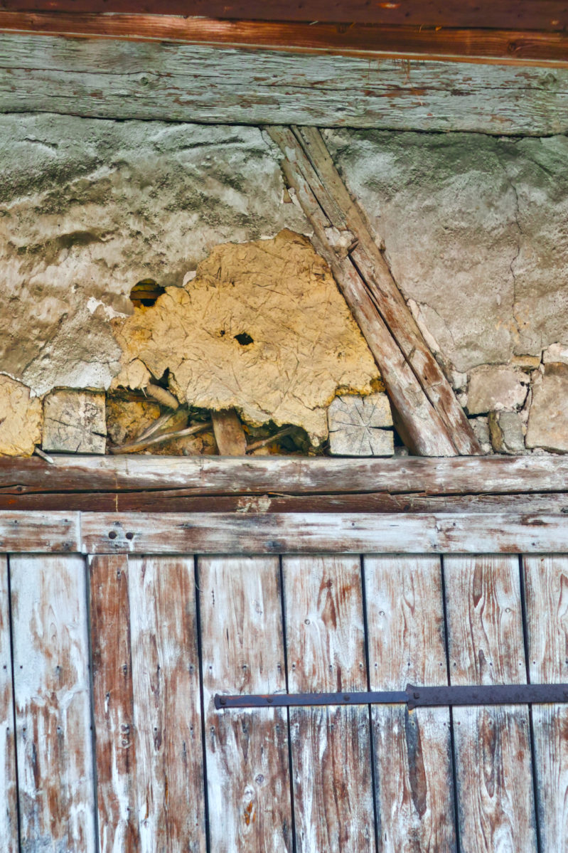 #1: Detailstudie, der beige Verputz ist aus Lehm und Stroh (früher waren die richtig auf öko, nichts mit Styropor und so)