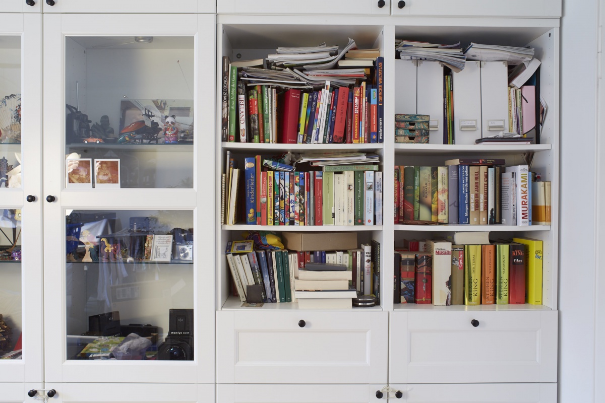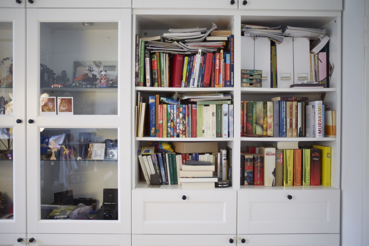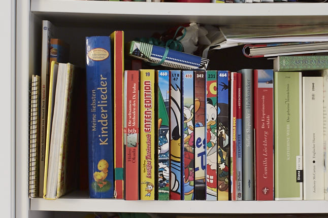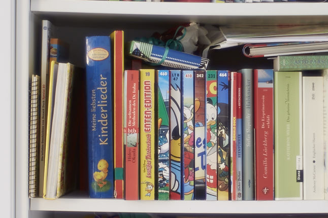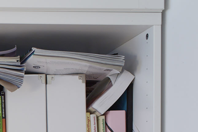 Deutlich am oberen rechten Bildrand im Regal zu sehen.
