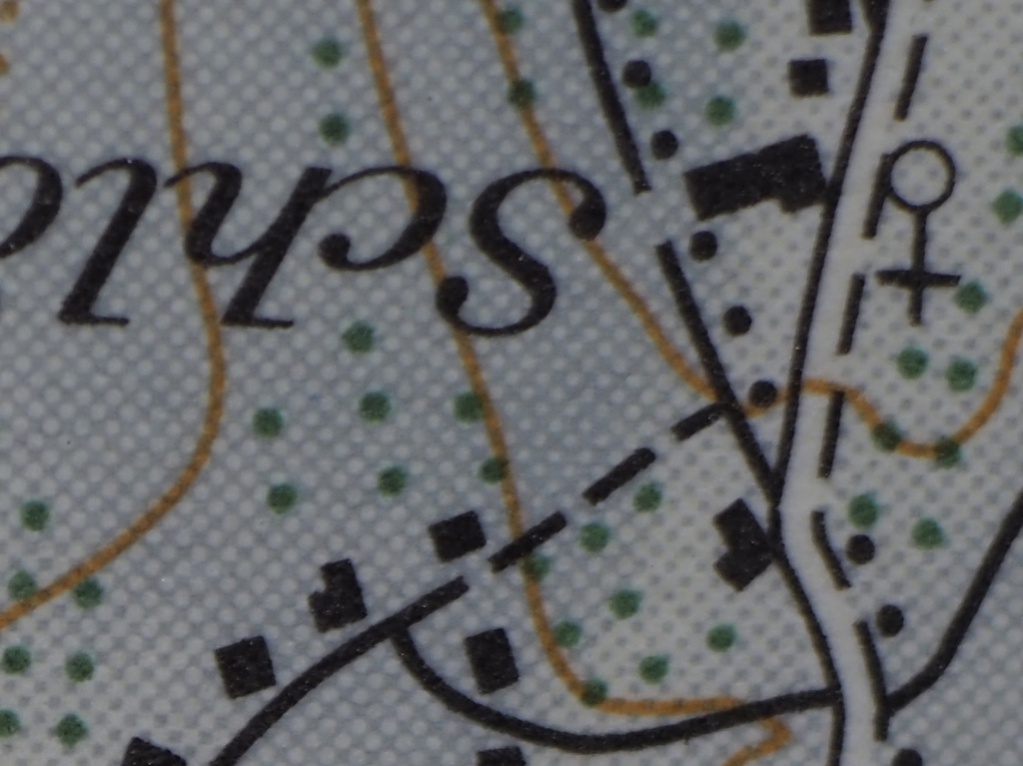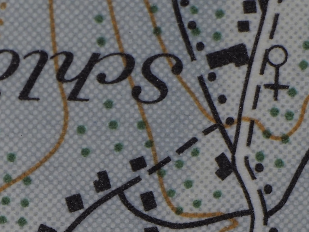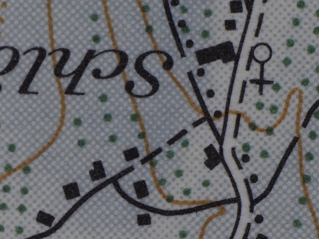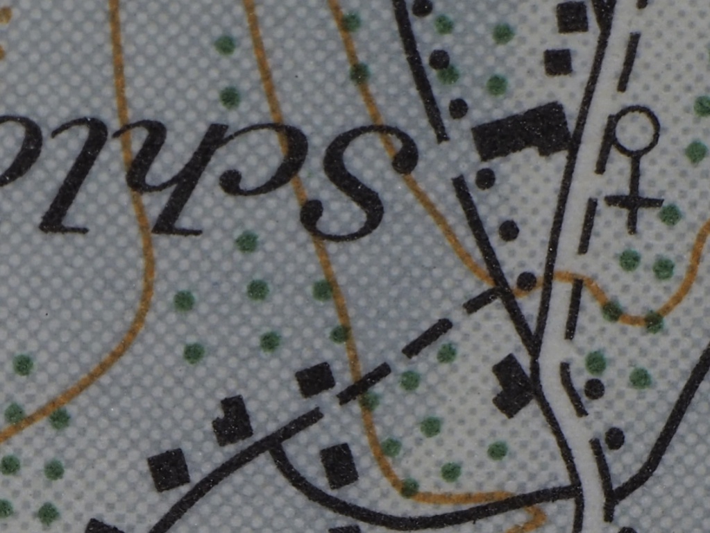 Für die Bildvergleiche habe ich einen Ausschnitt aus einer älteren Schweizer Karte im Massstab von 1:25'000 fotografiert. Die Bilder sind jpg ooc mit neutralen Einstellungen, bis auf den Kontrast, der auf tief eingestellt ist (die Oly arbeitet mir hier etwas zu forsch).
