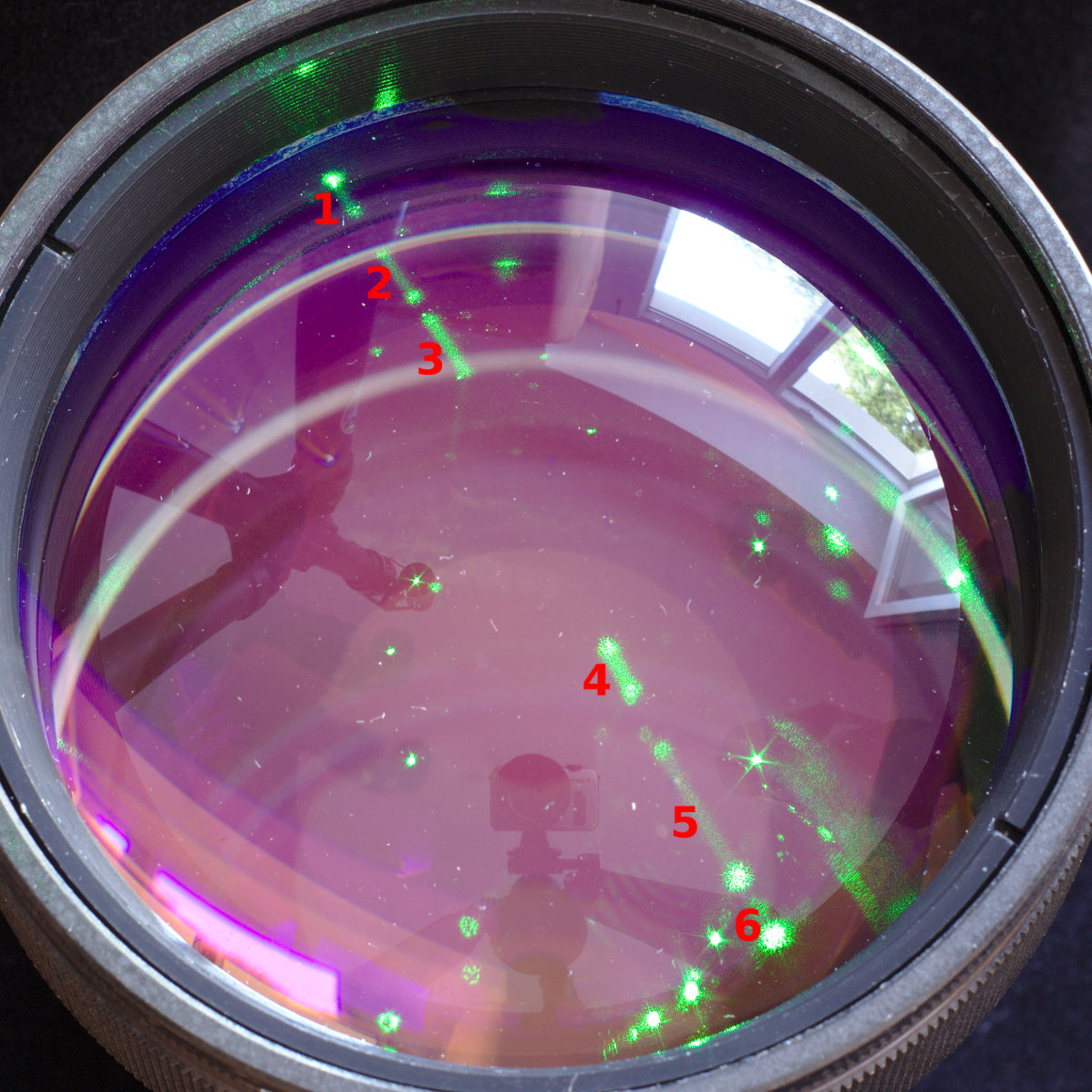 Eine wunderbar buntschillernde Mehrfachvergütung. Nur halt leider für ein Projektionsobjektiv sinnvoll aber zum Fotografieren auf der falschen Seite...:ugly1:
